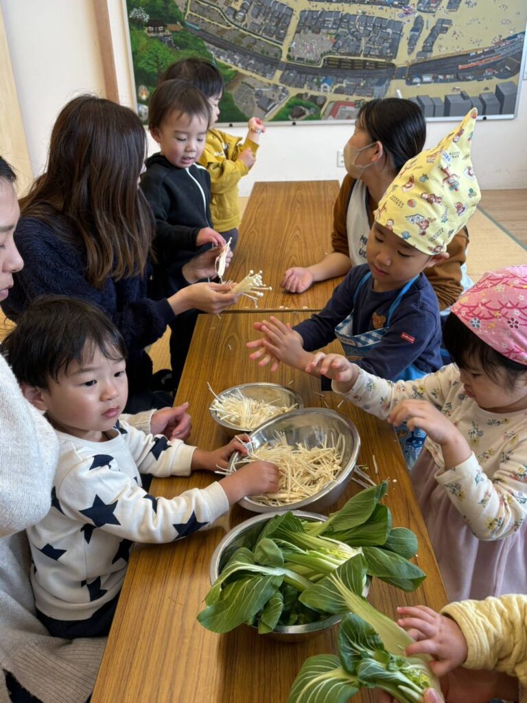 地域の親子3組とビィーゴほいくえんのお友だちで、賑やかなとんとんとんdz…