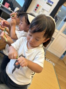 ストロー通しやポットン落としをして集中して遊んだりも…😊