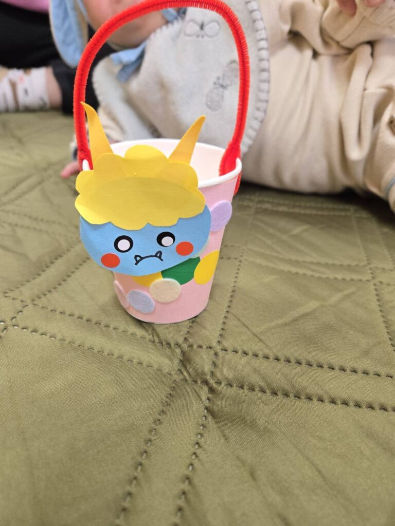 シールは難しいからママにまかせて出来上がりを喜んで持ってくれていました