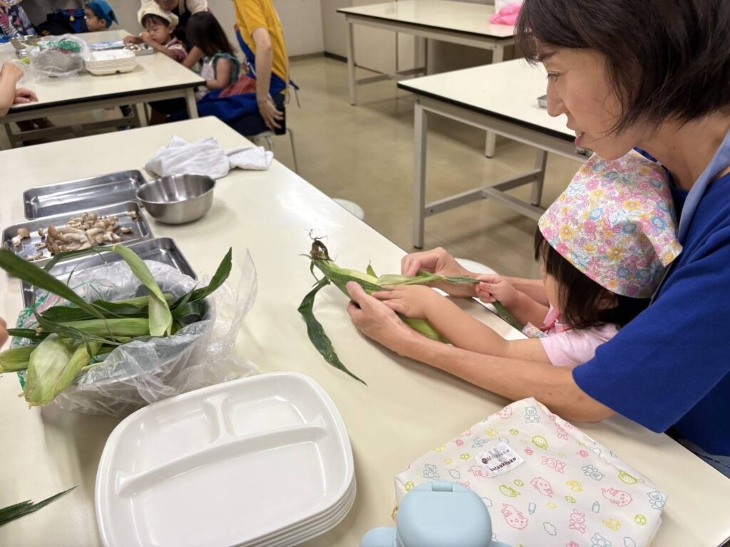 とうもろこしの皮むきは子どもたちには楽しかったようで、もっとやりたい!の声も🎶