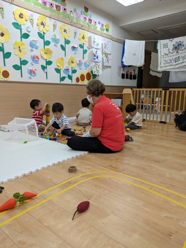 ♪Hello hello♪の歌がはじまると、嬉しそうに手をたたき出す子、恥ずかしくて棚の後ろに隠れる子などさ…