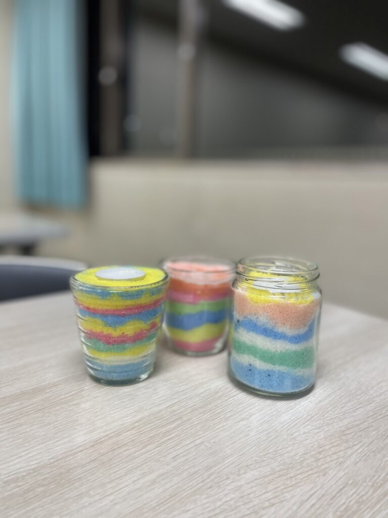 まずは塩に絵の具を混ぜて色んな色のお塩作り😊色が混ざっていくことが楽しくて「まぜまぜまぜ〜」とささやきな…