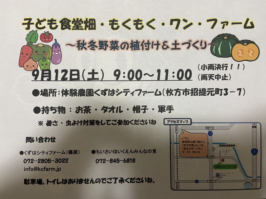 短い夏休みが終わり、 お盆が過ぎても暑い日が続いてますね。 9月は、 土づくりと秋冬野菜の植付け予定ですよ!! &nbs…