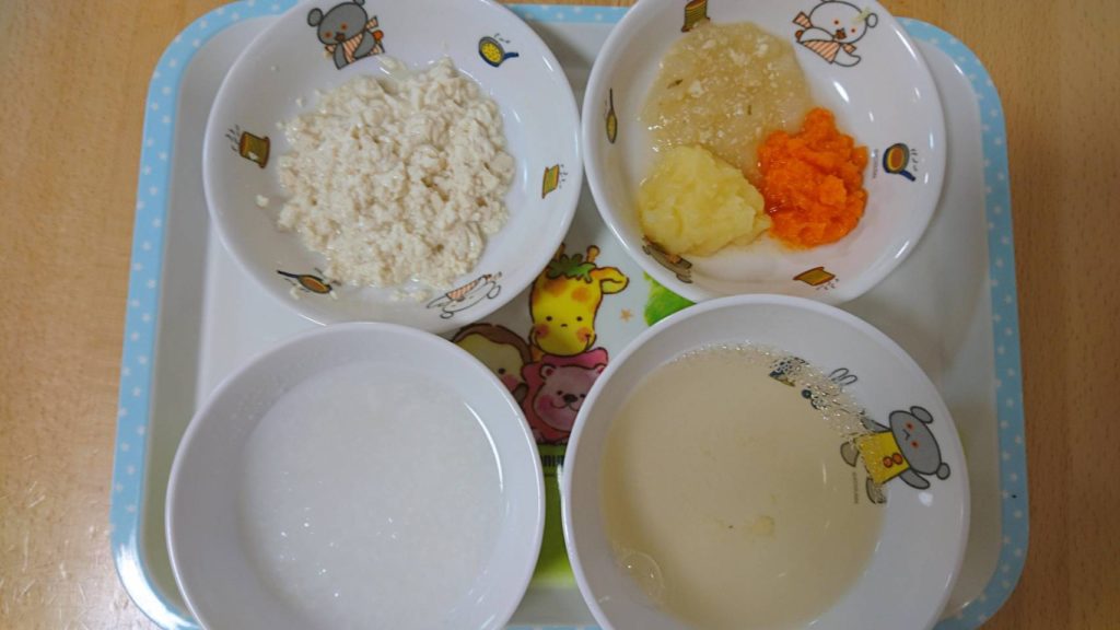 【初期 5〜6ヶ月】 初めは重湯ひとさじから始め、徐々に増やしていきます。 重湯になれたら次に野菜ペーストをひとさじずつ…
