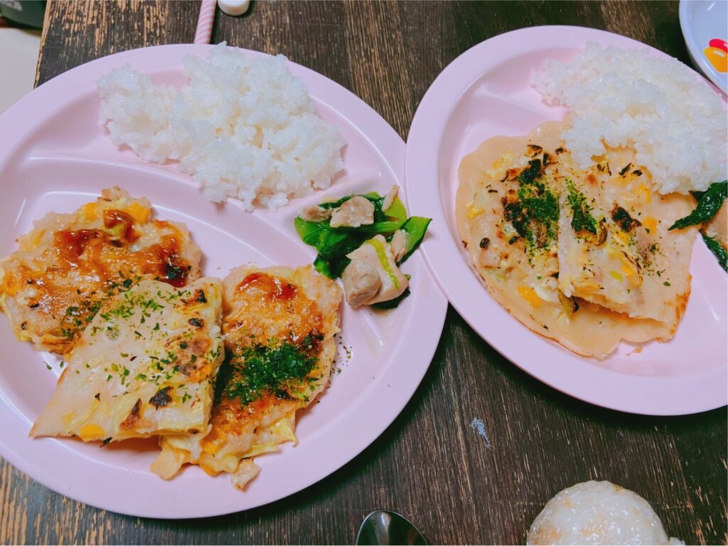 3月18日(金)の赤ちゃん食堂は、雨の中1組の親子が来てくれました! メニューは、お好み焼き、鶏肉と小松菜の中華炒め、白…