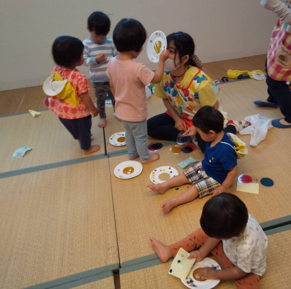 色が変わる面白さを楽しんでもらおうと『青いジュースに黄色を混ぜてミックスジュース…あれれ?色が変わったね〜』と、ペットボ…