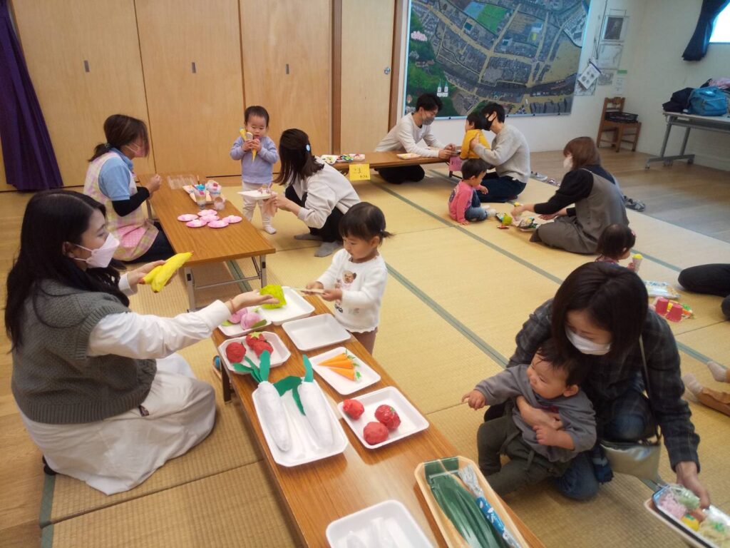 11月29日㈪、7組の地域の親子さんがあそびにきてくれました😊 今回はお店屋さんごっこ。まずは開店準備で…