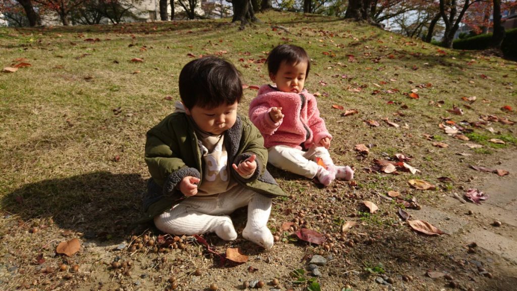 11月12日(木)の赤ちゃんくらすは、中央公園にて開催♫ どんぐりバックを持って、どんぐりや落ち葉などを拾いながら、秋の…