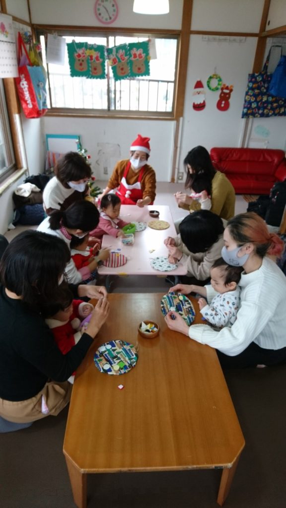 今回はクリスマス会をしましたよ♫可愛いサンタさんも遊びに来てくれてとっても賑やか! さんかくサンタの絵本のあとに、丸、三…