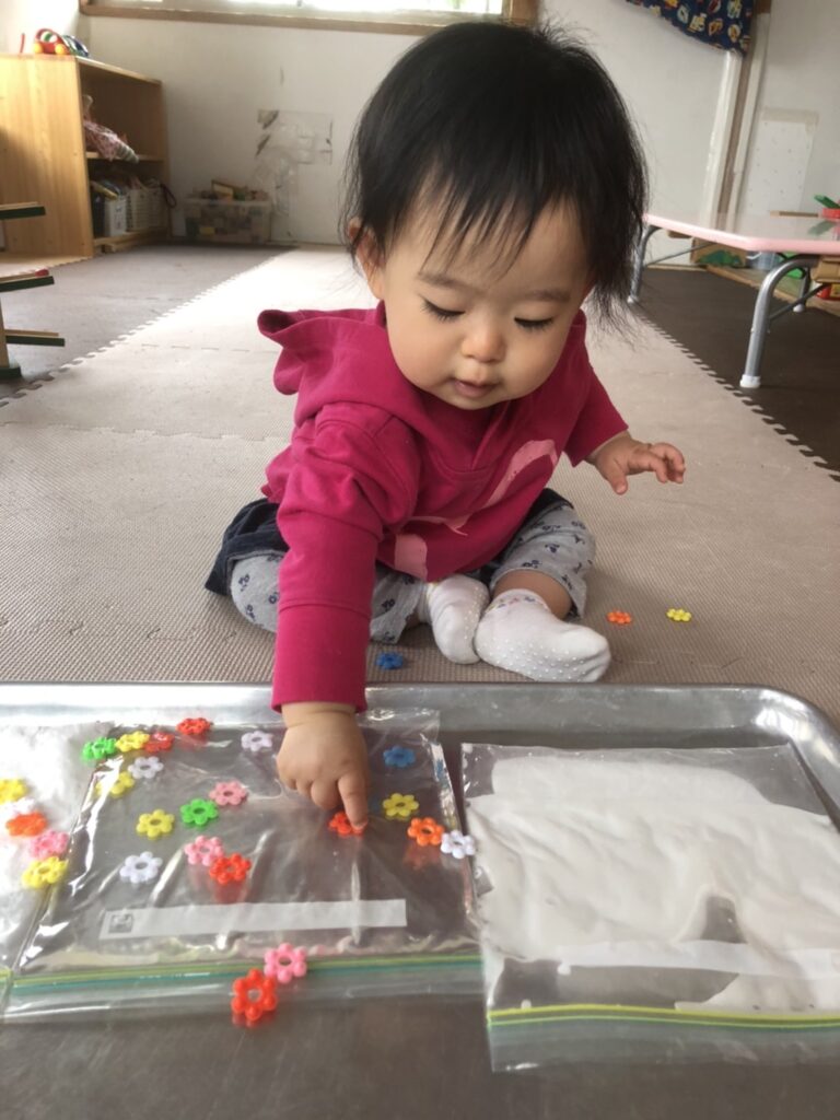今回は1組の親子が遊びにきてくれました。ちょうちょを作ったり、ジップロックに片栗粉や水をいれて感触を楽しみました。おもち…