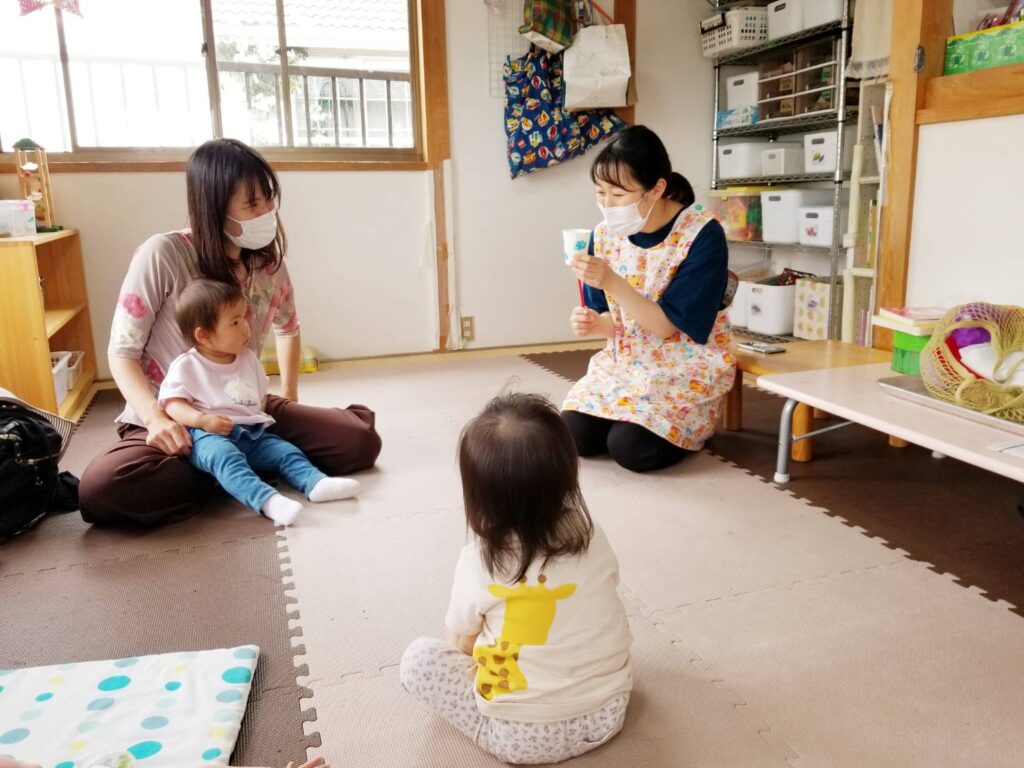 春の訪れを感じるこの頃♪今回は赤ちゃんとご一緒に一組の親子さんが遊びに来てくれました。みん里のお友達と一緒に4名でほっこ…