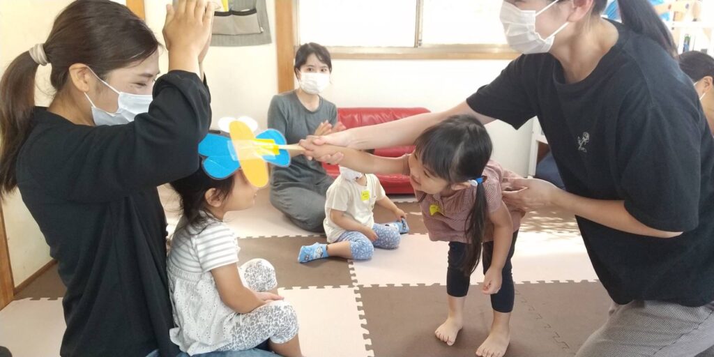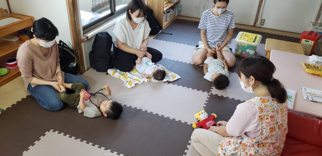 この日は3組の親子がご参加くださいました。 みんなで一緒に歌う「おはようのうた」から始まり、わらべうたを通してお母さんと…