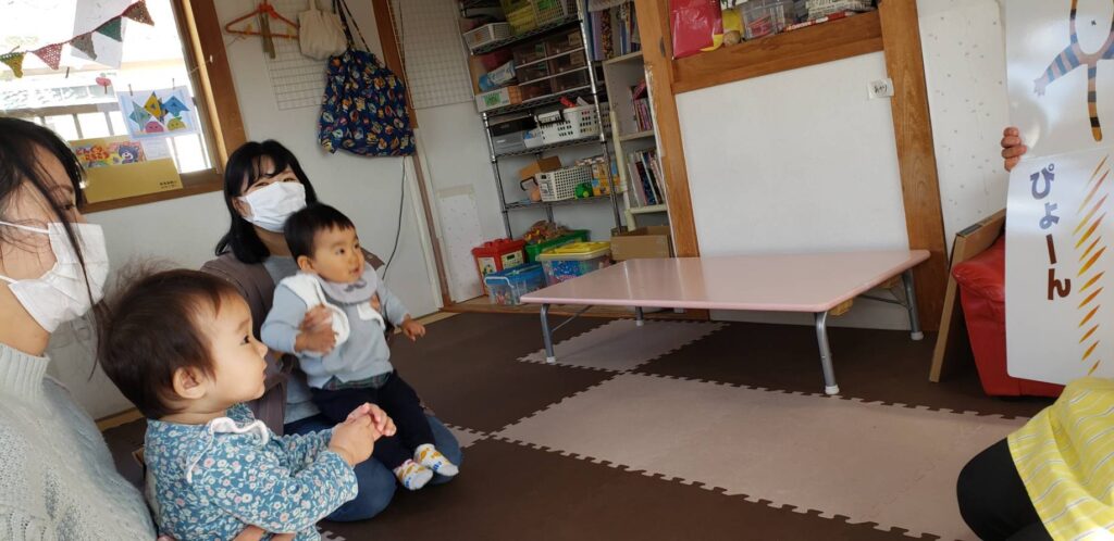 11月26日、3組の親子とみん里の子どもも参加しました! お母さんは顔見知りの方もいる中、お話も弾み笑顔から始まりました…