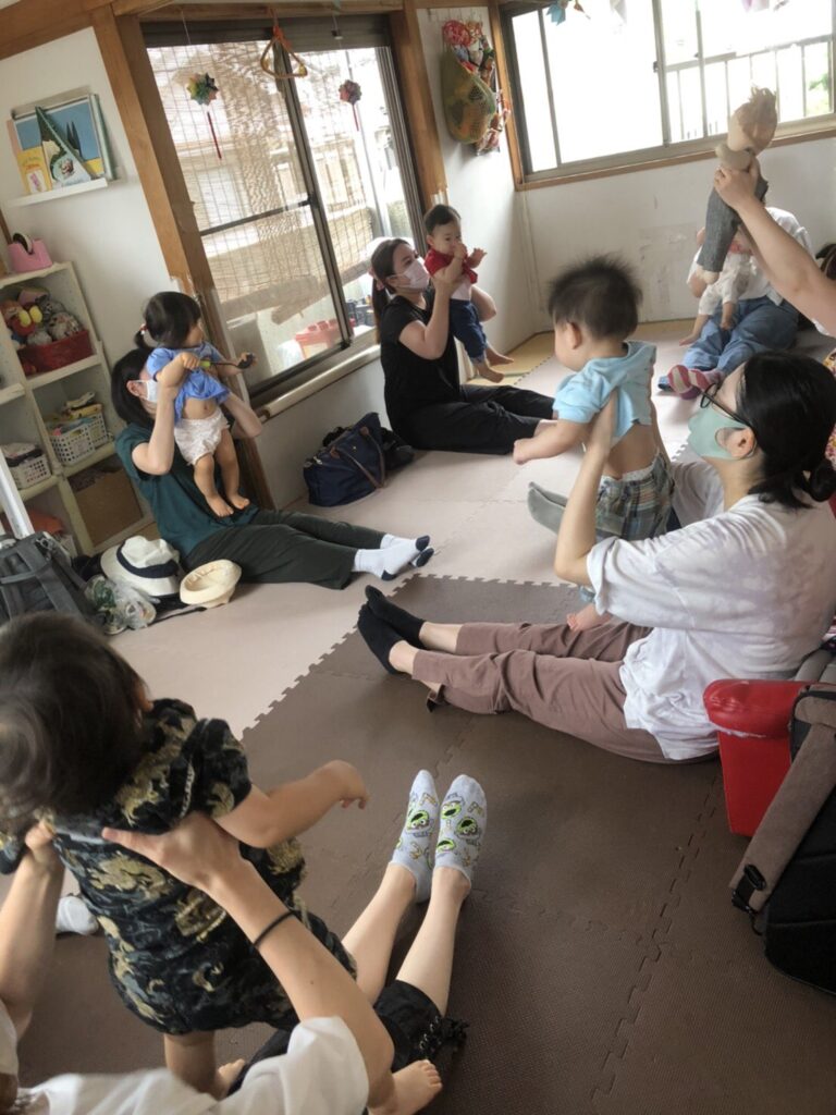 おはじまりの後は、ふれあい遊び。 ♪バスにのってゆられてる〜♪と、 お母さんの膝の上でとっても楽しそうな子どもたち。 な…