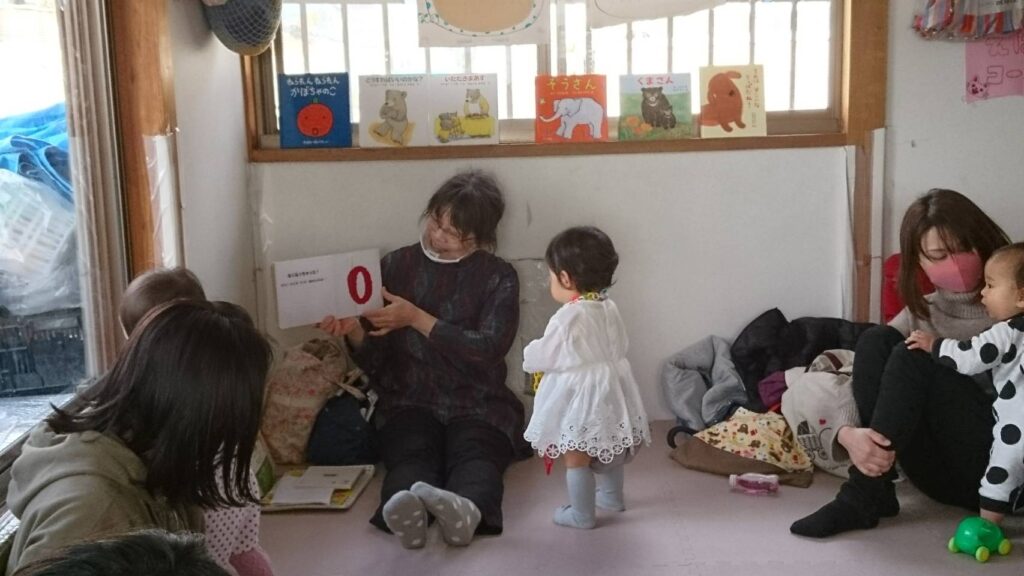 絵本を楽しみに地域の親子が集まりました。 みんながよく知っている 「いないいないばぁ」は 0ヶ月~1歳頃まで、ずーっと楽…