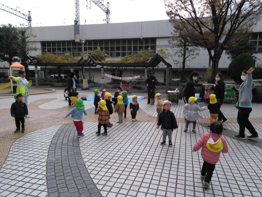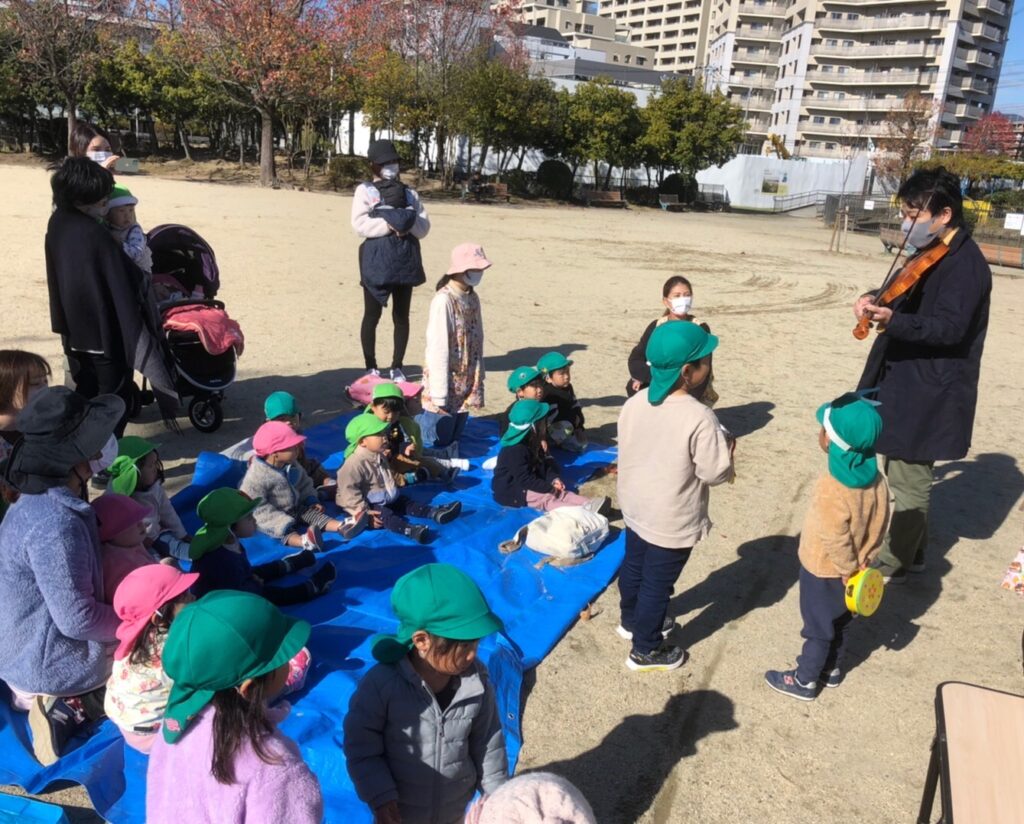 寒い中、たくさんの地域のお友達が集まってくれました。今回はクリスマスをお祝いしよう!という事で、みんなで大きなツリーを作…