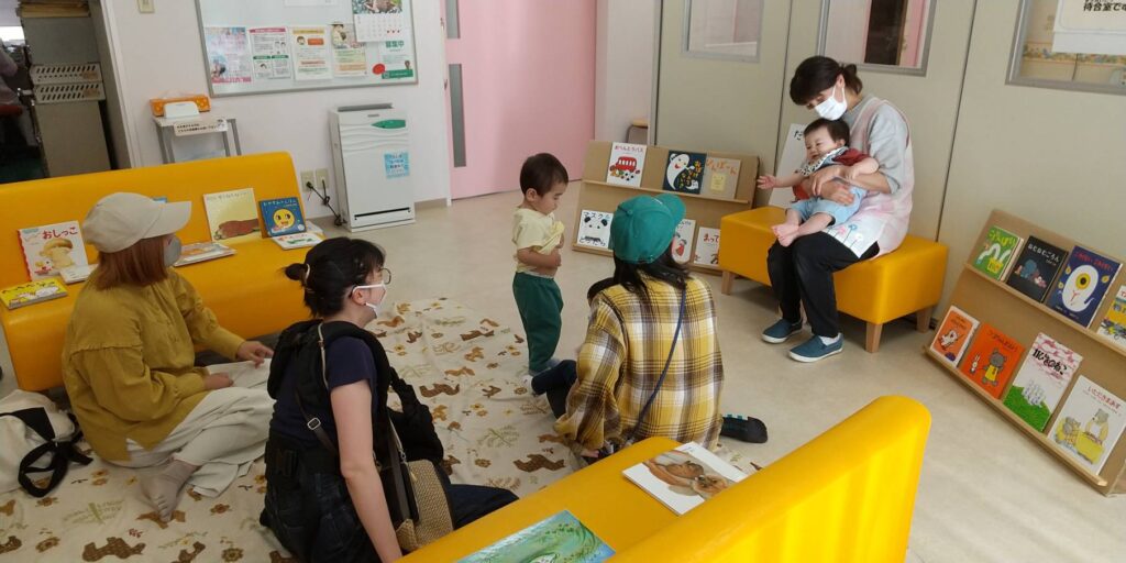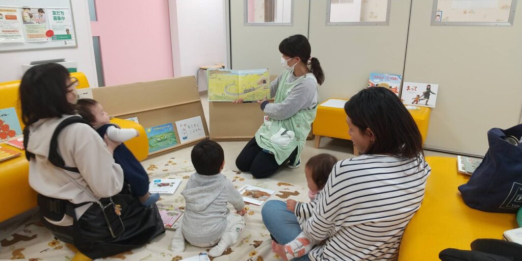 寒空の今日も、沢山の親子さんが参加して下さいました。 さっそく思い思いの絵本を手に取り楽しんだ後は、先生の柔らかいわらべ…