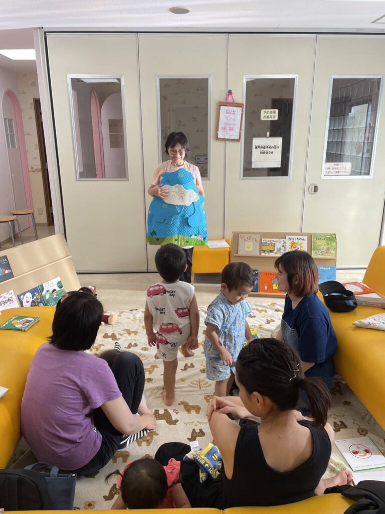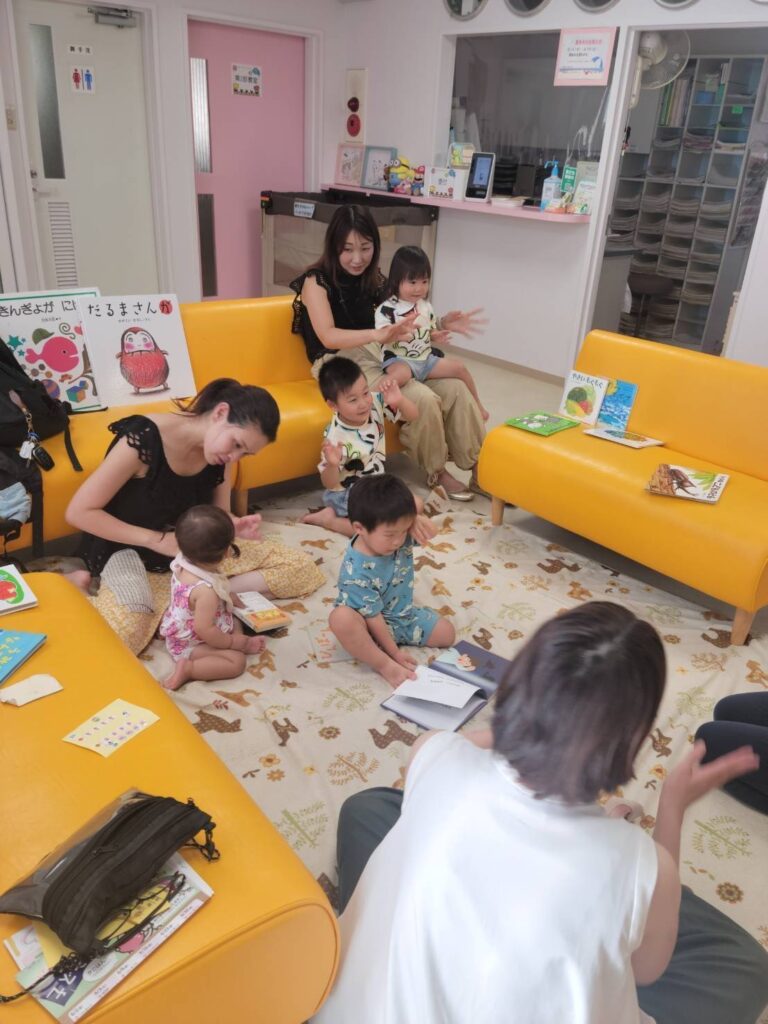 まだまだ、残暑厳しい時ですが、汗いっぱいになって、集まってくれました😉 「乗り物の絵本ある?」と、到着早…