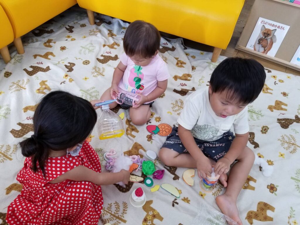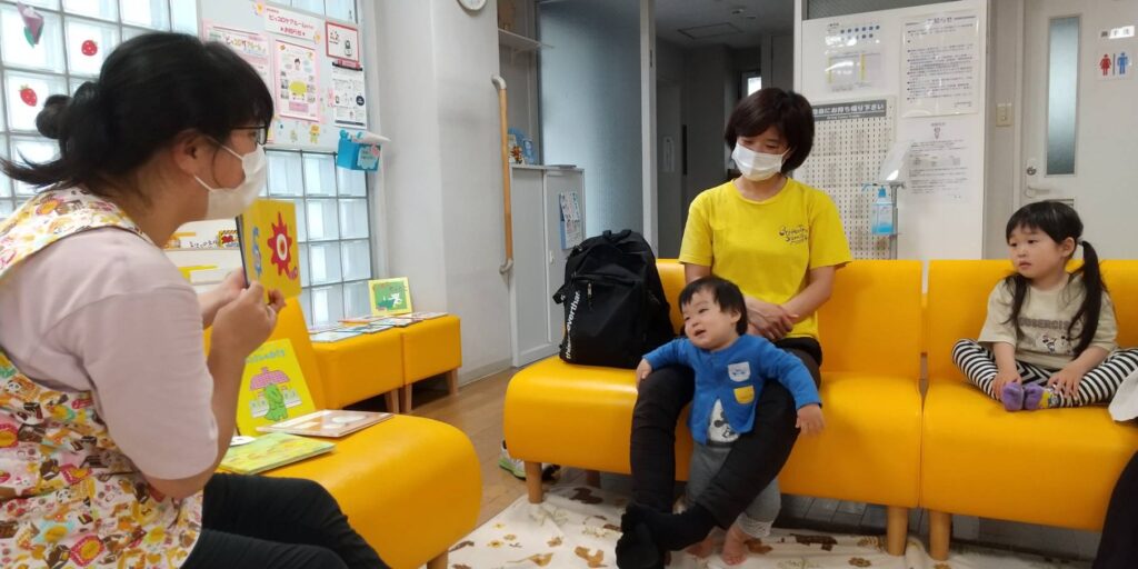 絵本大好き💕仲良しの親子3組さんが来てくれました。 お部屋に入るとすぐに気に入った絵本を手に取り、「これ…