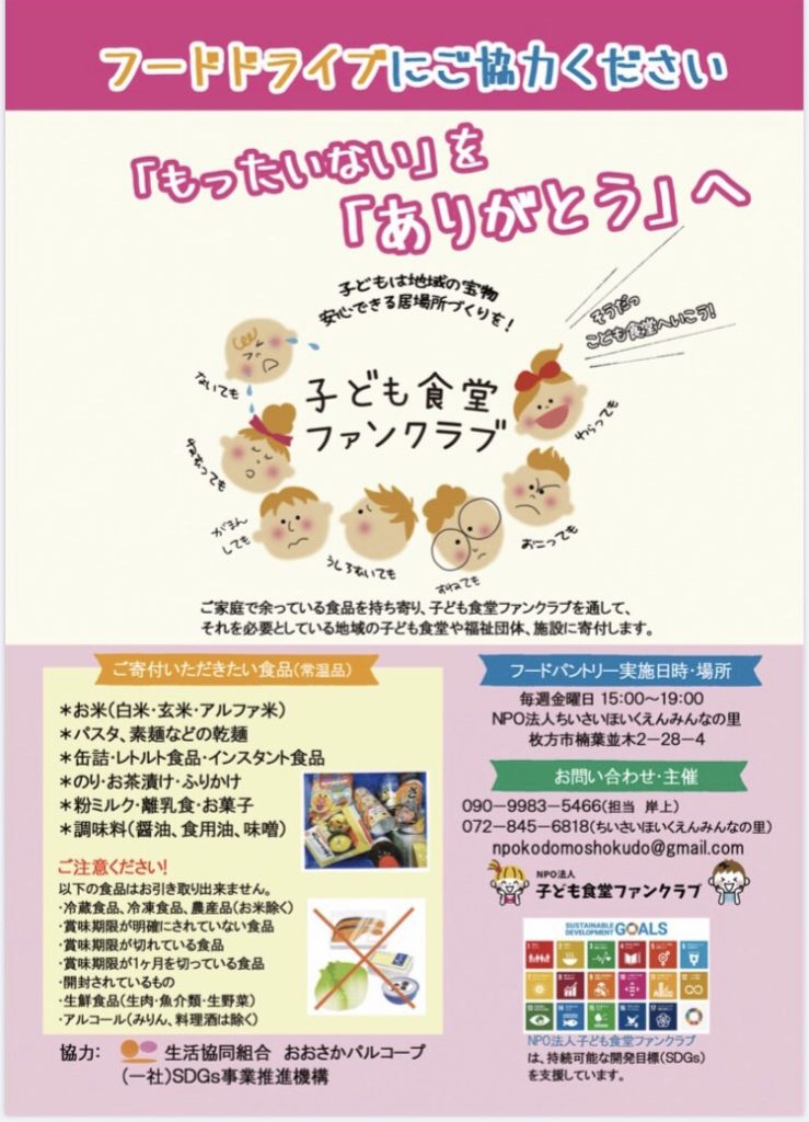 「もったいない」を「ありがとう」へ 『フードドライブ』へご協力下さい♪ ご家庭で余っている食品を持ち寄り 「子ども食堂フ…