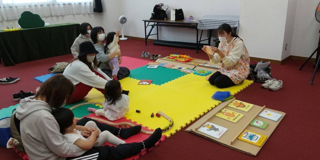 4月ということで、イースターのお話をちょっぴり説明のあと、たまごの絵本や、ペープサート.テーブルシアターで遊び、皆でイー…