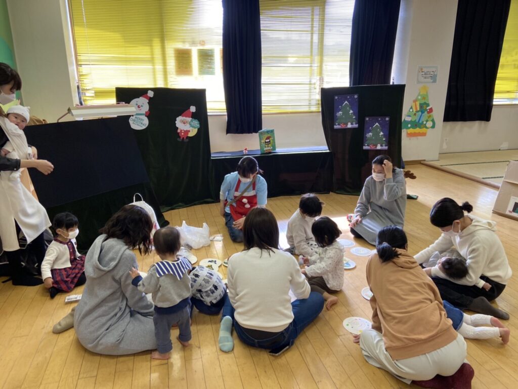12月25日のどんどこに8組の親子さんが、遊びに来てくれました。 クリスマスの絵本を読み始めるとみんな、じーっと聞き入っ…