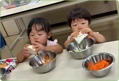 食事を作る親へのサポートを通じて、身体に良いものを選んで作り、楽しく食べる意識を育んでいます。